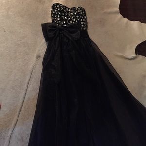 Wore this my freshman year prom! This dress is so pretty, but it's also sassy because the whole bottom black layer is sheer. There's a tight mini black dress that goes to your knees underneath. Ugh the best look ever!! Bought at Terry Costa for 375!