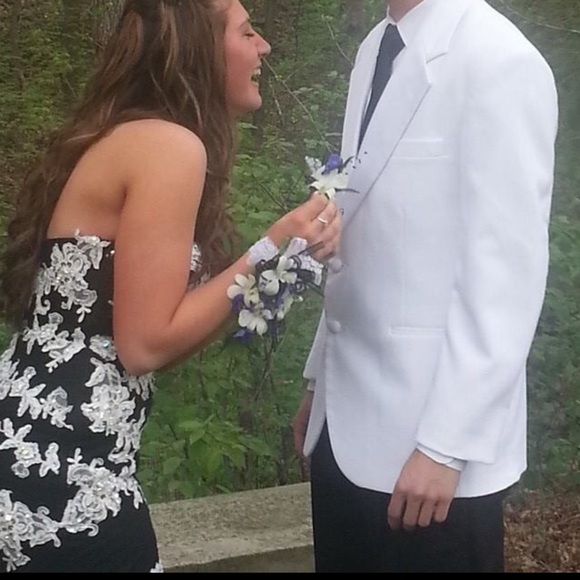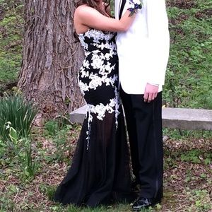 Black and White lace prom dress. Style: Mermaid