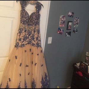 This is an Original prom dress. Only was worn once and it's in great condition. The dress is as the picture. Also the dress is a size 10 but was altered to fit me. I'm not sure what size it will be now. But it's a beautiful gown.
