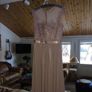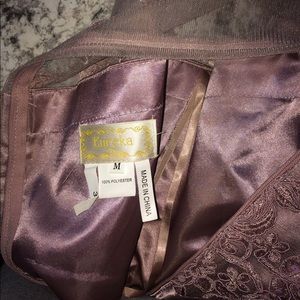 Only worn once, in perfect condition! Grayish purple color. I am 5’9 in height and it was a good length on me when wearing heals, can be hemmed though if too long.