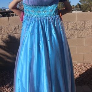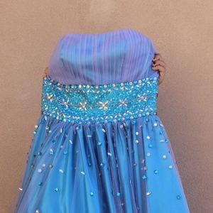 The only flaws I could find is a small hole on the bottom of the dress ( see last picture)but it doesn´t show while wearing. Also one halter broke off.