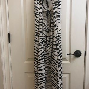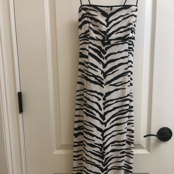 Zebra print, backless, strapless evening gown with slit in back. Very dynamic!