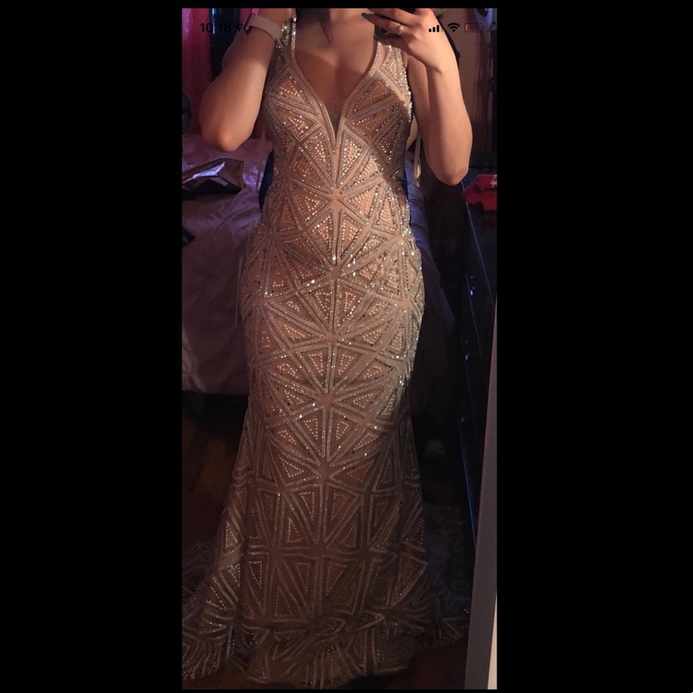 Prom dress brand new with tag size 4 with a train in the back very elegant and very beautiful at night dress is an original by LARA