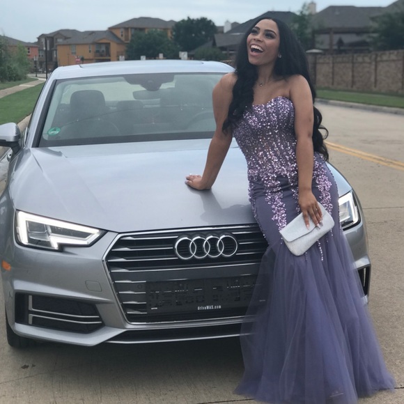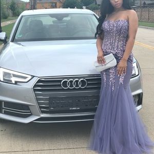 This is a purple prom dress worn once!! Like New!!! Has a see through stomach area and fits really well!!