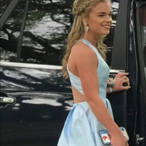Light blue prom dress, bought from prom girl.com , worn once , has pretty back design, please comment of interested!!