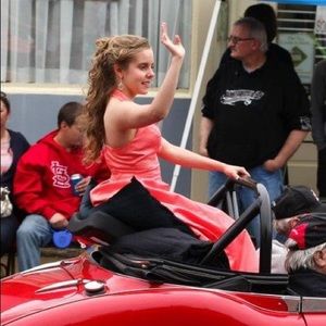 Worn once in a parade. Color coral