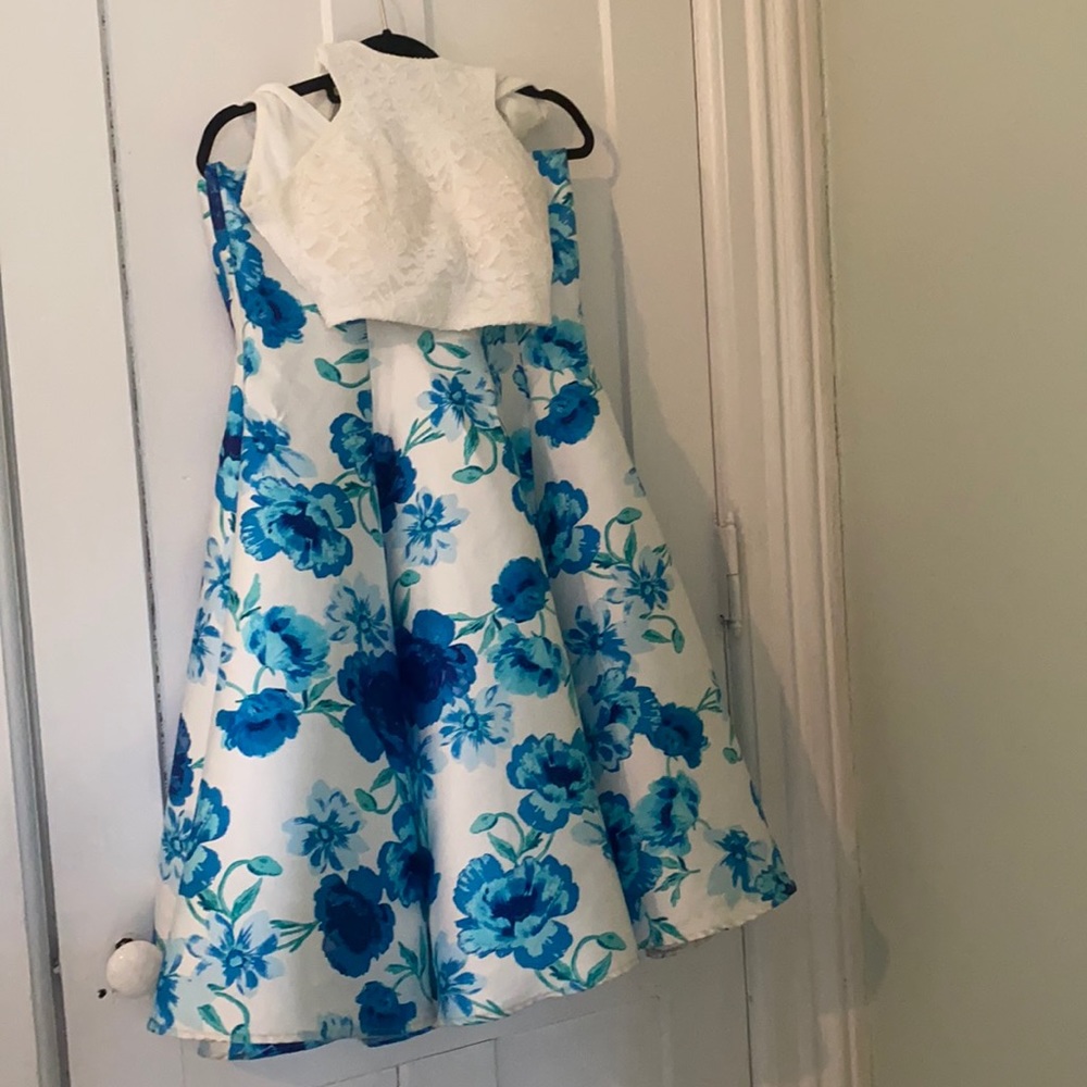 Blue floral bottom and white lace top with sparkles
