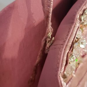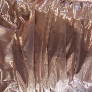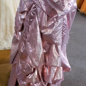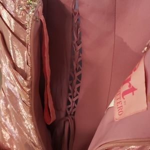 Metallic pink, Rouge skirt and bodest, lining of top, removable straps, inside lace up, zipper outside