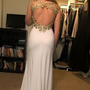 Gold lace with white jersey knit prom dress. Worn once. Excellent condition.