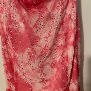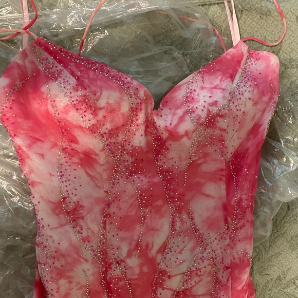 Long pink tye dyed prom dress. Beading throughout. Fits a size 6. extra beading included. My favorite dress. Worn once.