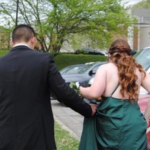 Very long satin dress emerald green has a slit down the leg sort of an open back straps are also adjustable worn once for a few hours needs ironed since been kept in package great material just need gone