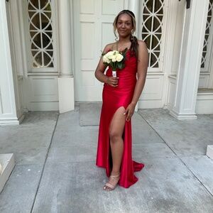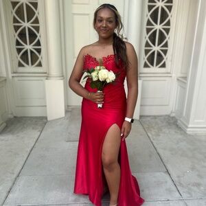 Prom dress from My Best Friend Jenna , size large but it fits like a medium ! I usually wear a size medium! The dress also comes with straps that are attached on the dress but they can come off as well and be strapless