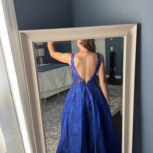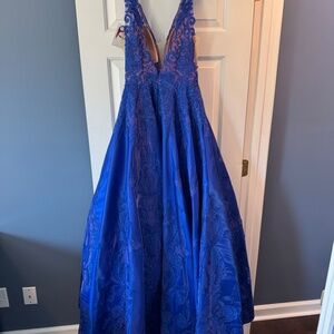 Royal blue, sequined, unused prom dress with tags still on. Comes with earrings!
