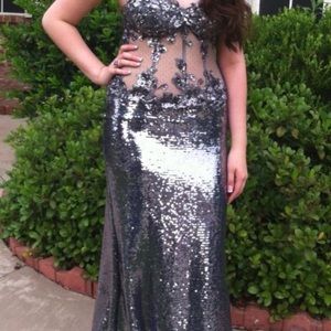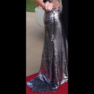 Size 8, worn only once. Great condition. Sequins from the waist down. The dress has a slight train. I'm 5'5 and weighed 145.