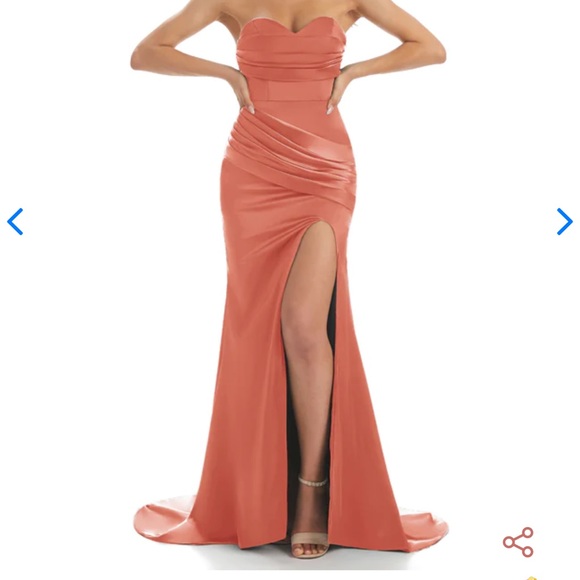 Brand new with tags, never worn. Champagne formal gown size 4 no alterations done on it.