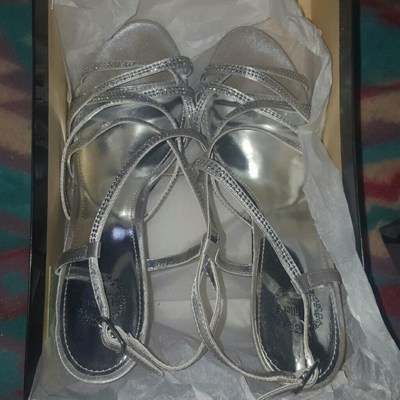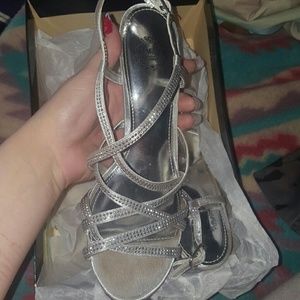 Silver high heels with sliver studs , super cute ! They have been worn once as seen in 3 picture other the in that still perfect !😘