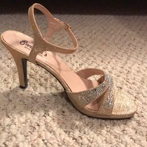 Rose gold heels, very comfy, easy to walk in, worn once only for prom pics