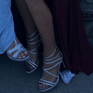 Prom shoes!! Wore once, perfect condition, little to none dirt at bottom of shoe. Back zipper up, 4” heal, cushion footbed. I’m usually an 8 but the shoes runs small and I got 9 1/2 that fit perfectly