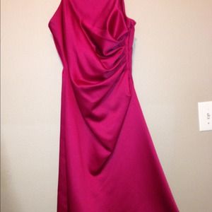 This dress is burgundy in color with spaghetti straps. It was worn once in a wedding.