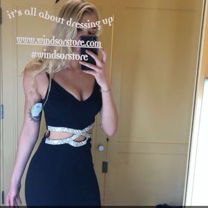 Beautiful navy blue with rhinestone navy long dress. Tight mermaid style! Only worn once in great condition!