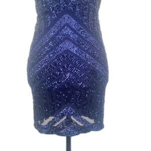 PromGirl Sequin Lace Up Back Mini Dress Semiformal Plunge Navy Blue Size Small