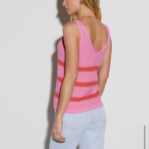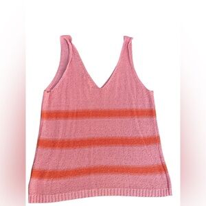 Stylish knit tank top. Features pink and red stripes. Perfect for casual outings.