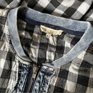 Promesa | Buffalo Plaid Denim Panel Zip Blouse