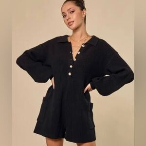 Promesa Button Romper chunky knit polo collar button down long sleeve crotchet