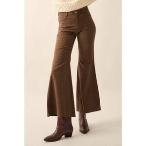 Promesa Chocolate Size Medium Floral Twill Cropped High-Waist Flare Pants