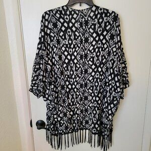 Promesa Fringe Patterned Cardigan Cover Up Size: One Size Length 30"