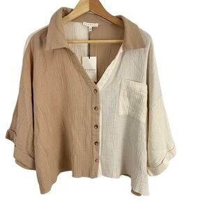 Promesa Gauze Shorts Sleeve Button Front Top Oversized Women Large NEW