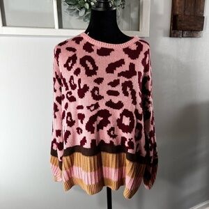 Promesa LEOPARD PATTERNED Thick KNIT Tunic Oversized SWEATER Bubble Sleeve M/L