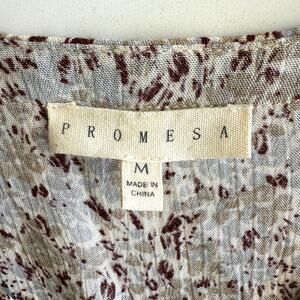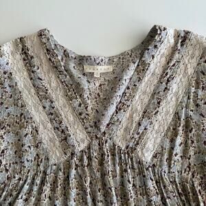 Promesa Lace Detail Shirred Swing Floral Peasant Sleeve V Neck Cropped Blouse M