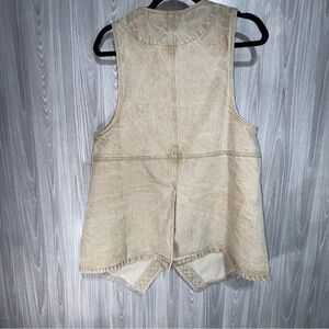 Promesa Long Lined Beige Oversized Button Down VNeck Denim Vest Size Large
