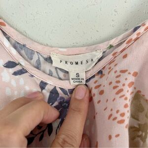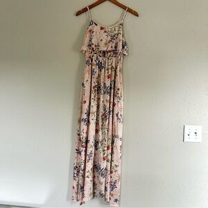 🦋 Promesa Pink Floral Maxi Dress Leg Slit Small Ruffle