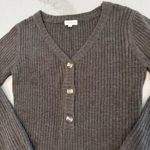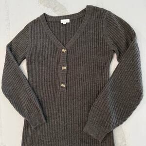 Promesa Ribbed VNeck Henley PuffSleeve Sweater Bodycon Dress Womens Small Brown