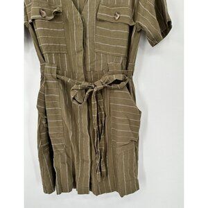 Promesa Shirt Dress Women Large Green Button Front Striped Short Sleeve Belt
