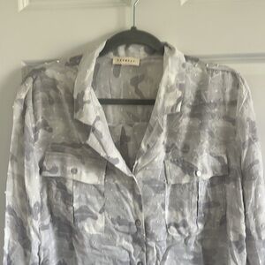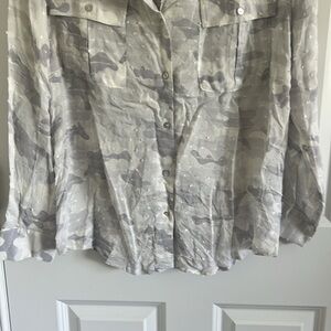 Promesa Size Small Gray and White Camouflage Button Down Blouse