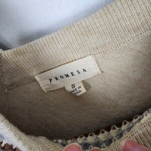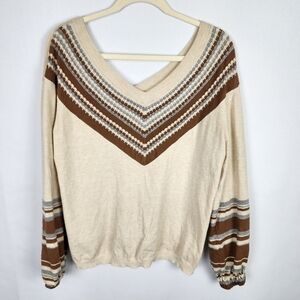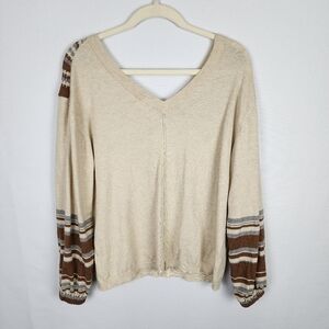 Promesa Women's Small Cream Striped Long Sleeve V-Neck Soft Pullover Sweater