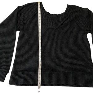 Promesa sweater black long sleeve waffle back v-neck kangaroo pocket size medium