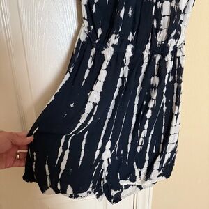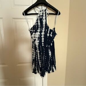EUC Stylish navy and white tie-dye romper with a halter neckline. Perfect for casual outings.