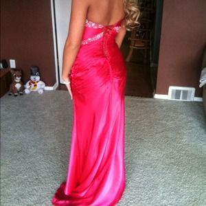 It is a hot pink color. Has been worn once and shortened for height of 5'6" including heels. Does not need any fixes. Is in perfect condition. If interested please comment!