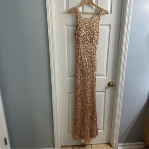 Promgirl Dress Long Sequin Formal Gold Strappy Back Prom Size 2 Extra Small