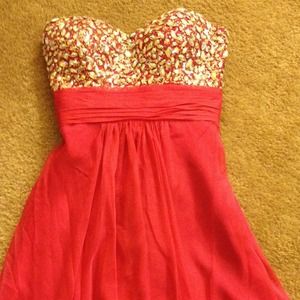 Proms/homecoming dress! Bought size 4 altered it down to around a 2. There's a few loose beads but otherwise perfect condition! Only worn once!