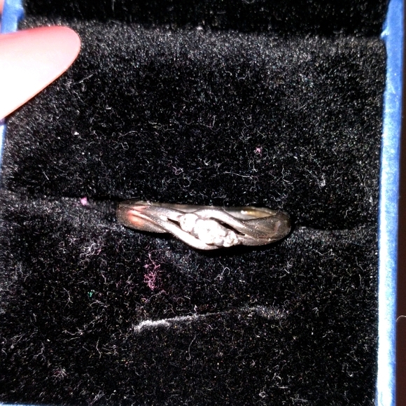 A dainty and classically beautiful sterling silver promise ring in size 5 with a cluster of 3 diamonds from Kay Jewelers.