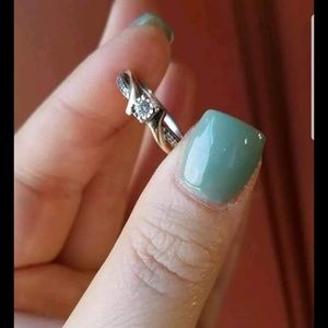 I am selling a gorgeous promise ring. It has a 10k gold cross over, only worn a handful of times. Polished everytime it was put away would make a great gift for your partner!! Size 7. Comes with ring box and gift box OPEN TO OFFERS