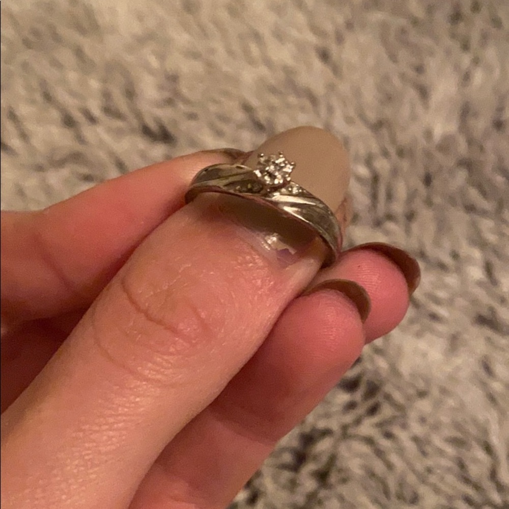 Small diamond ring. Very used, good condition. Honestly, could use a polish.