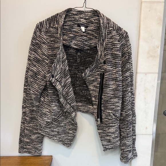Promod Size: 6 or Small Black and white zipper asymmetrical cardigan. Front zipper pockets. EUC