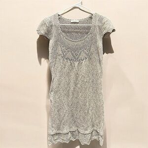 Promod Gray Knit Short Sleeve dress MEDIUM length 36in pit to pit 15in