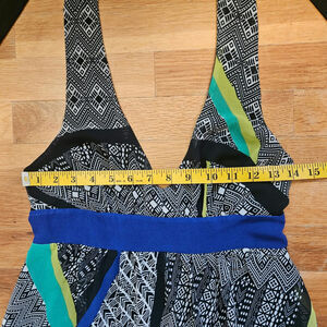 Promod halter-style maxi dress in size Small with a smocked bodice and sheer boho-inspired print. Lightweight and flowy—great for festivals, beach days, or layering. Excellent condition; offers and bundles encouraged!